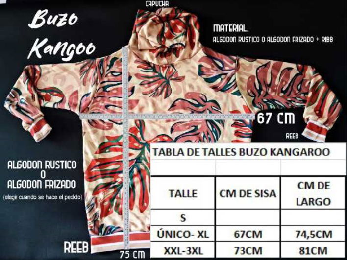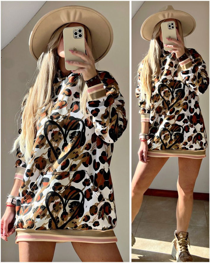 MAXIBUZO OVERSIZE de algodón con frisa sublimado canguro, con capucha y bolsillo.