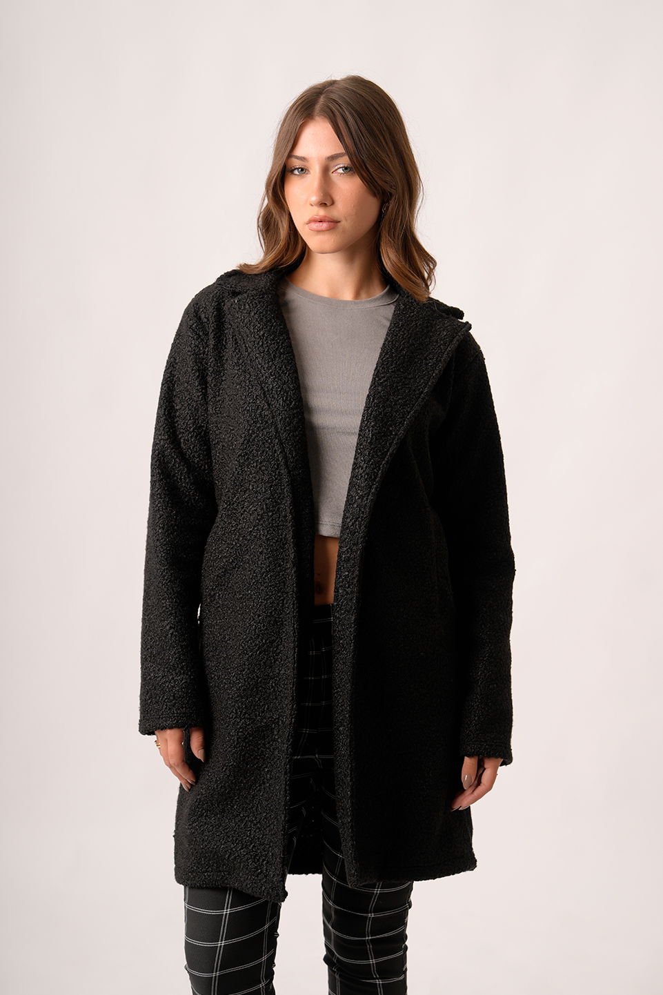 Tapado de paño sin forrar con bolsillos, no tiene botones