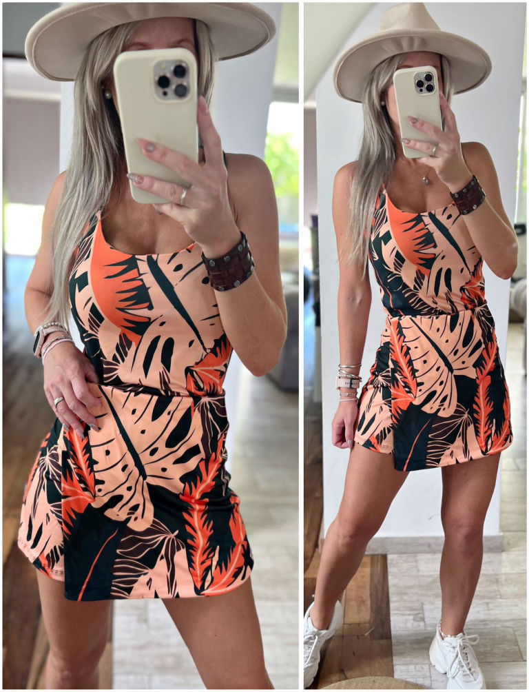 Conjunto de algodón liviano. Compuesto por short-pollera y musculosa.