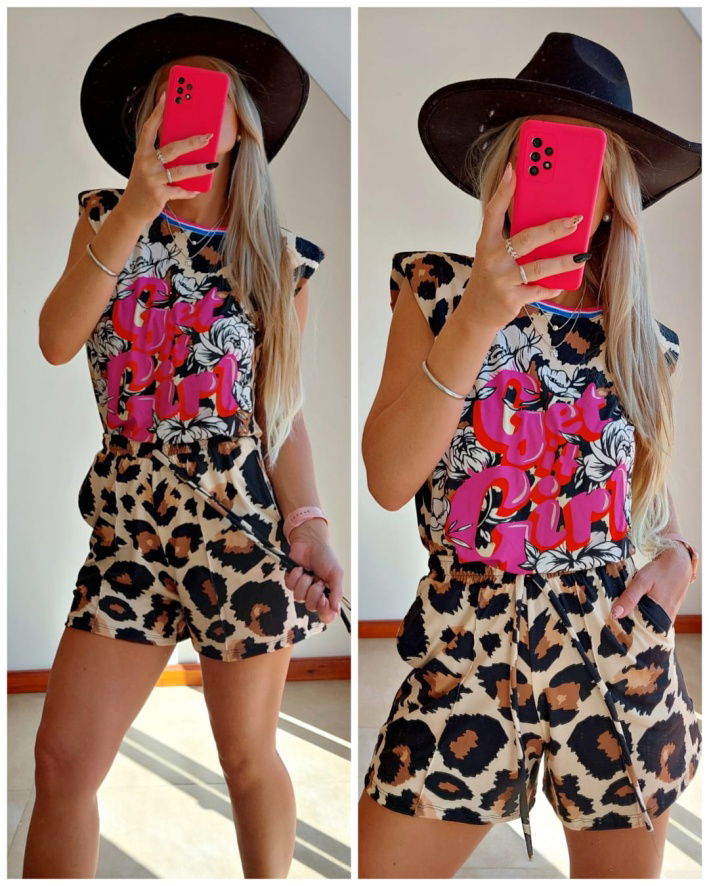 Conjunto de algodón sublimado liviano con Elastano, elastizado con spandex. Compuesto por short y remera con hombreras.